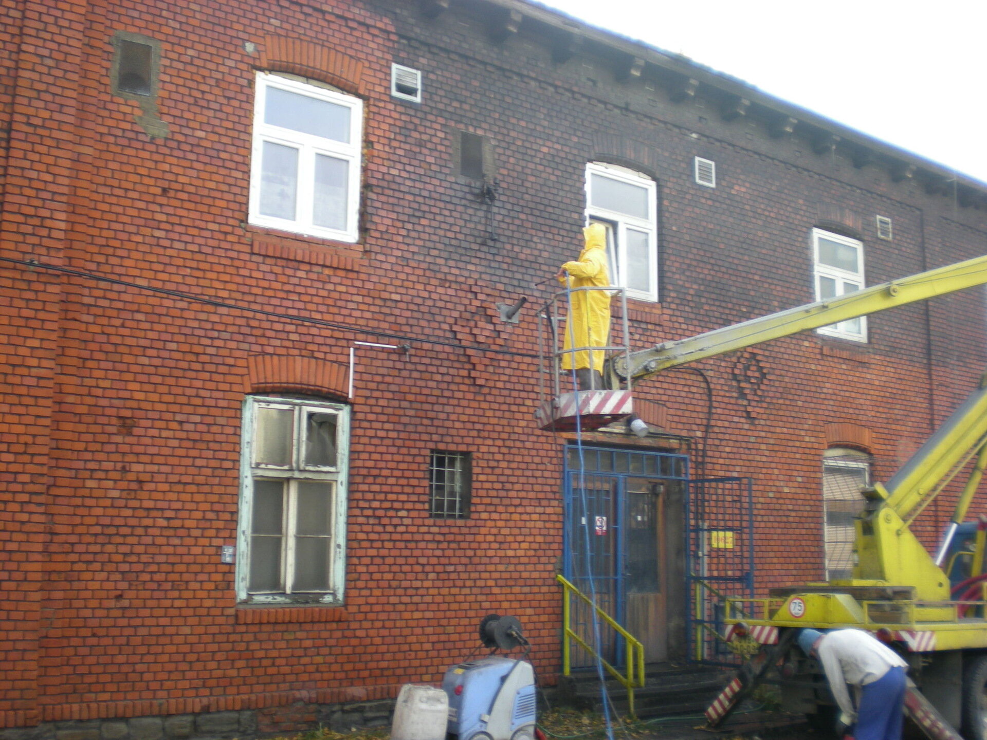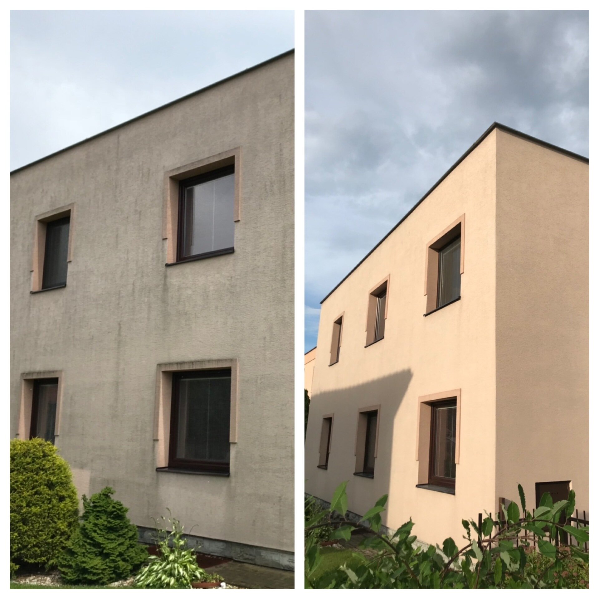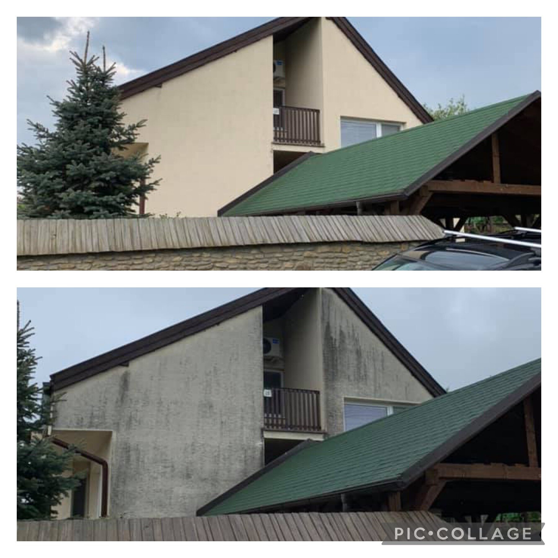 Akékoľvek silne znečistené fasády odborne zbavíme povlaku zo smogu a prachu, usadenín z komínov, sadzí alebo výparov z kuchyne. Zbavíme dom mikroorganizmov, zelený povlak z rias a plesne očistíme šetrne bez poškodenia fasády. Na záver nanesieme fungicídny nástrek.